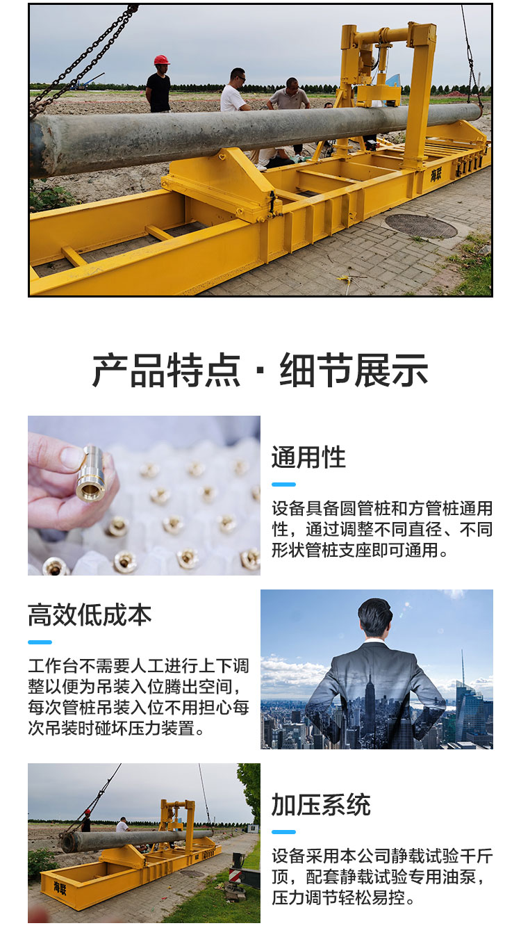 通用性:設備具備圓管樁和方管樁通用性,通過調整不同直徑、不同形狀管樁支座即可通用。